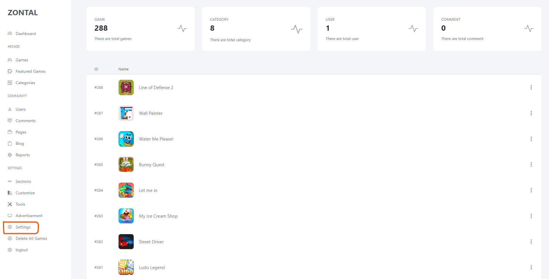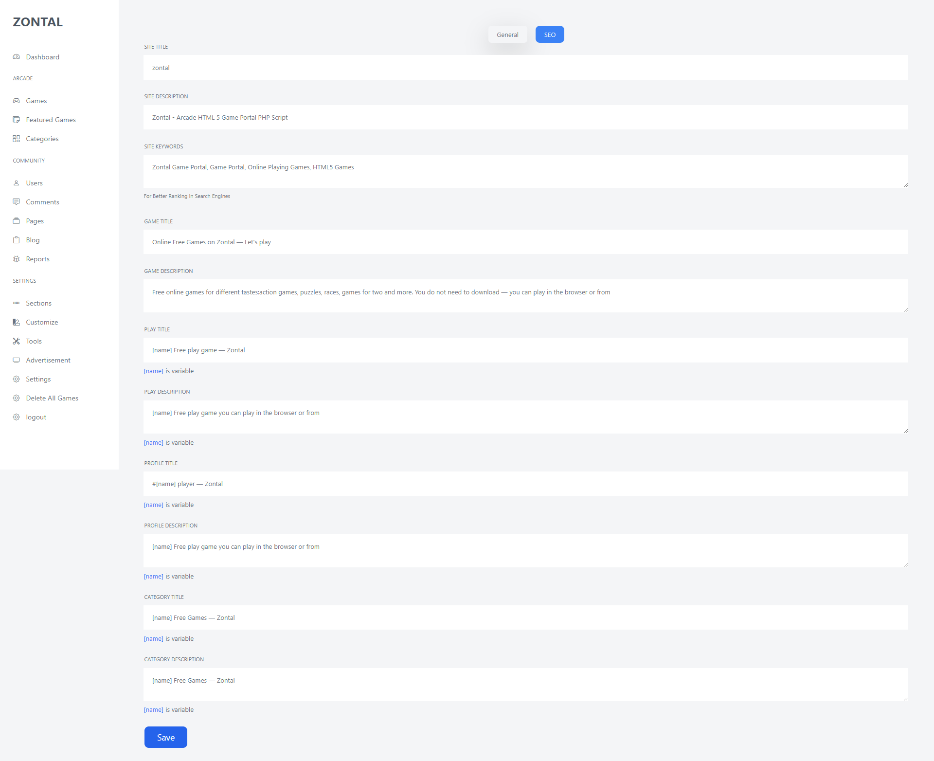 Zontal Arcade HTML 5 Game Portal PHP Script documentation version 3.0